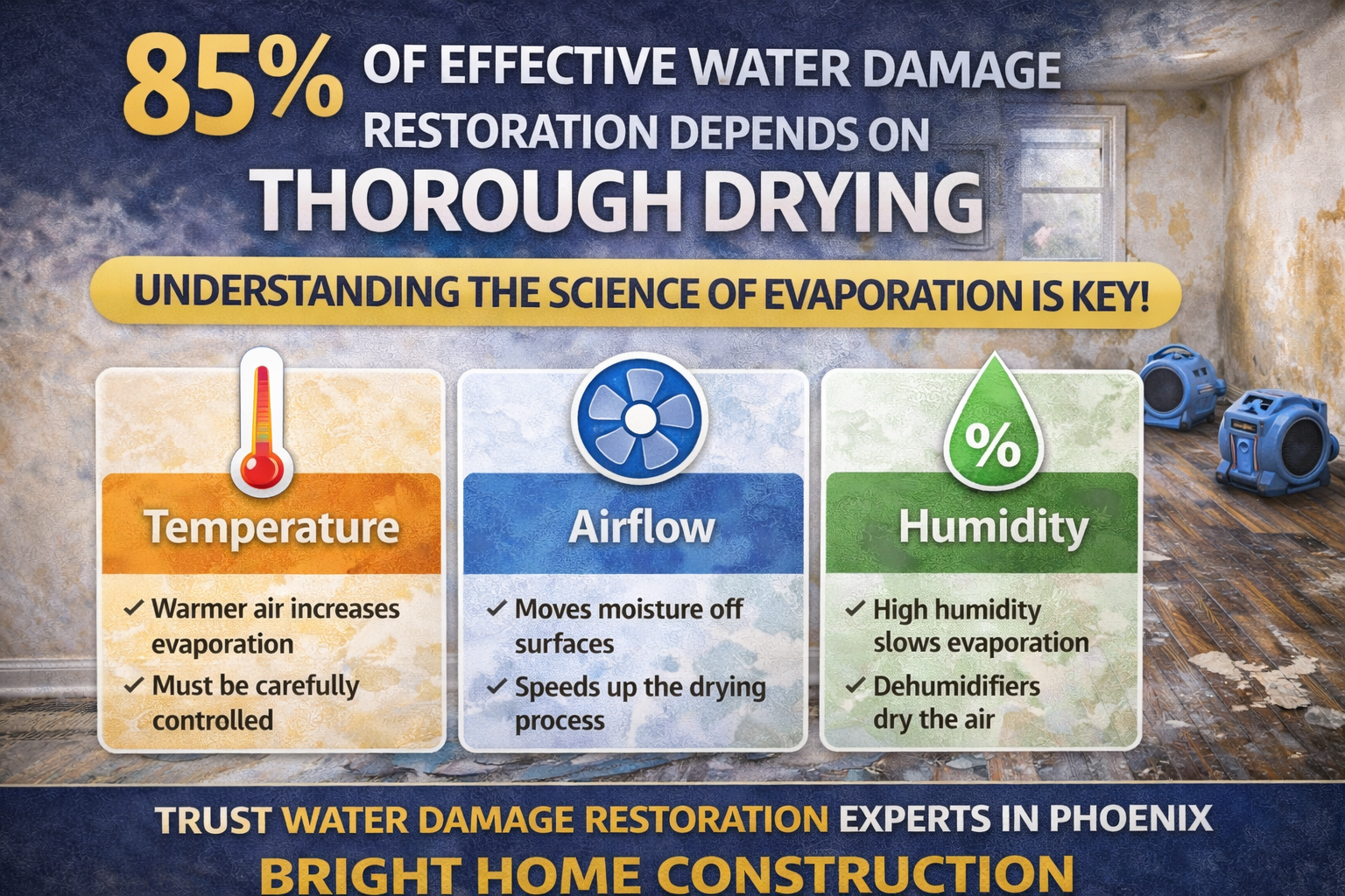 Bright Home Construction is a trusted provider of professional restoration services in Phoenix, AZ, specializing in advanced water damage solutions. With a strong focus on scientific drying methods, precision, and customer satisfaction, we ensure every project is handled with expertise.